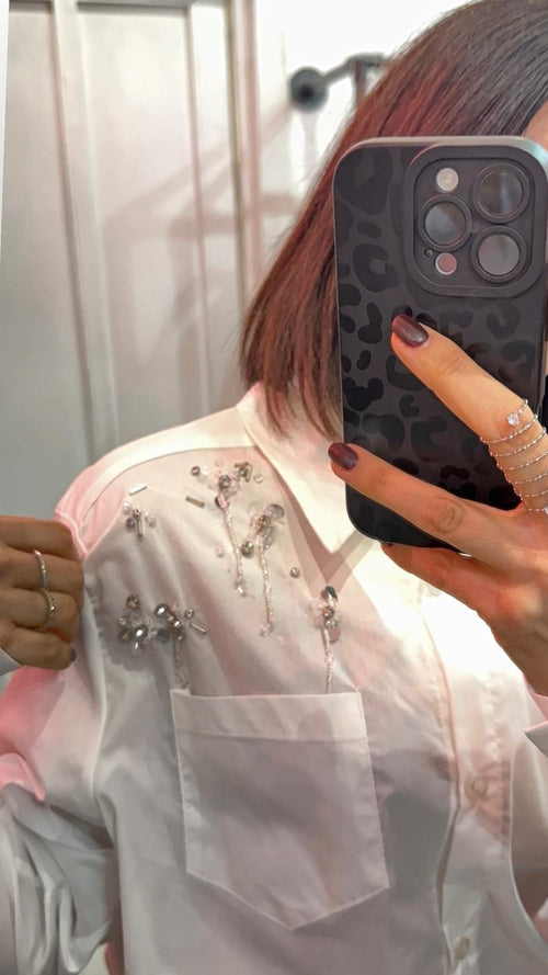 Top pois con laccio al collo e schiena scoperta e dettaglio fiore oro -